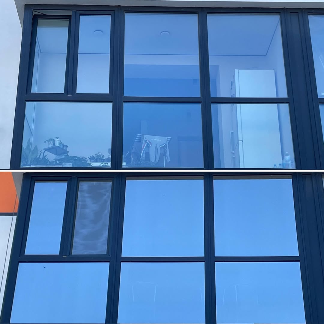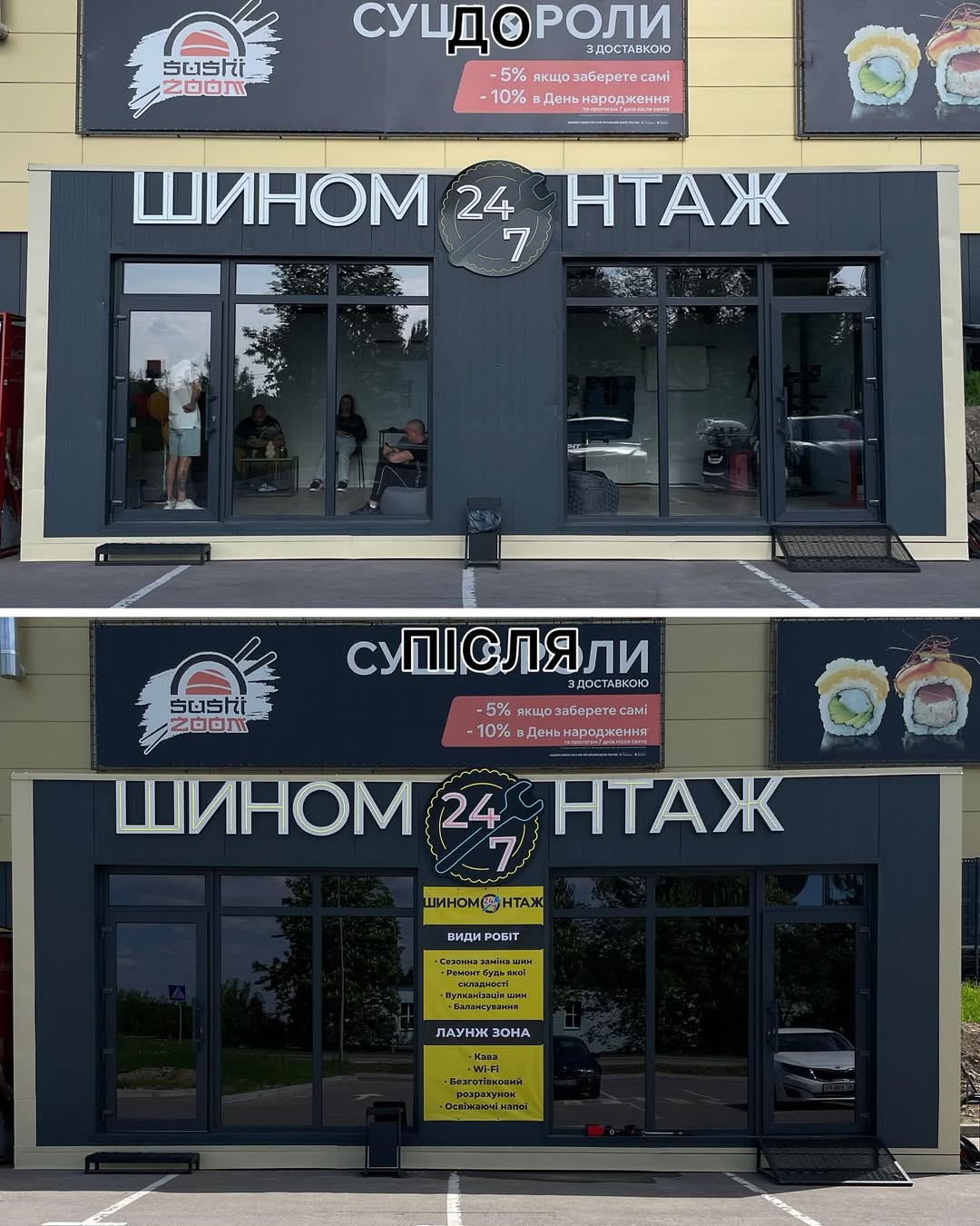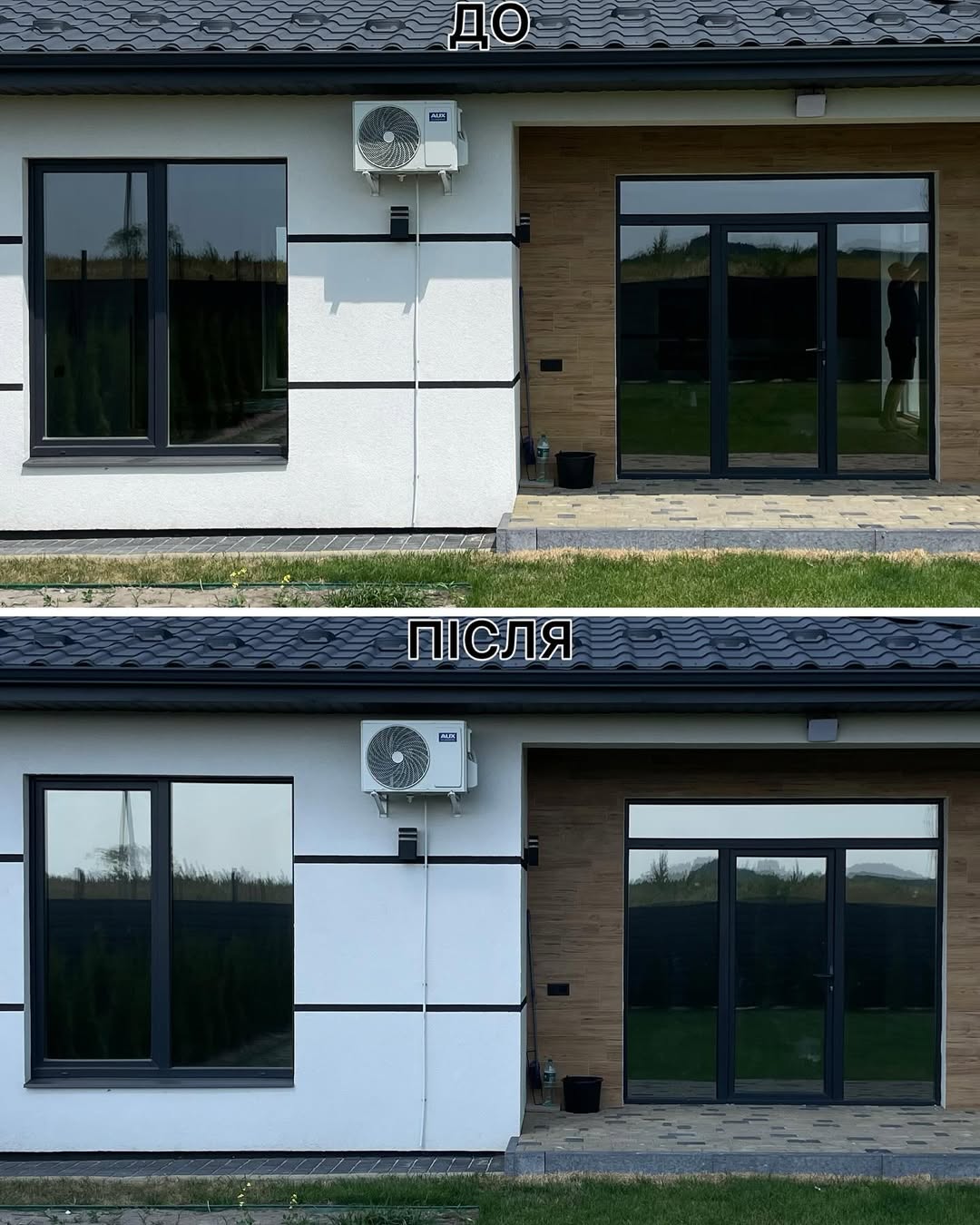 Результат: Фасад отримав охайний оновлений вигляд, приміщення стало комфортнішим, а нова плівка працює ефективніше та виглядає значно акуратніше за попередню.